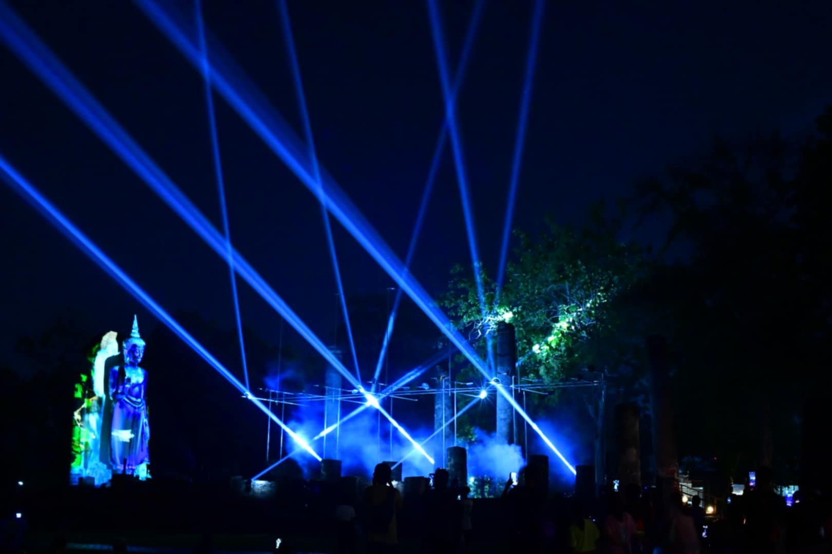 ภายในงานจะมีการจัดแสดงแสงสีเสียงสุดอลังการ ภายใต้กิจกรรม ปรากฏการณ์แสง เดอะซีรีส์ “เล่าขานตำนานเมืองสรลวงสองแคว” โดยใช้เทคโนโลยี Projection Mapping ผสาน Lighting และ Laser ส่องฉายภาพลงบนโบราณสถานพระราชวังจันทน์ ถ่ายทอดเรื่องราวประวัติศาสตร์เมืองพิษณุโลกในรูปแบบศิลปะร่วมสมัยที่ตื่นตาตื่นใจ แบ่งการแสดงออกเป็น 2 องค์ องค์ละประมาณ 5 นาที เป็นเรื่องราวของพระราชวังจันทน์และวัดวิหารทอง กรแสดงแสงสีเสียงจะมีด้วยกัน 4 รอบ เริ่ม 19.00 น. – 22.00 น.