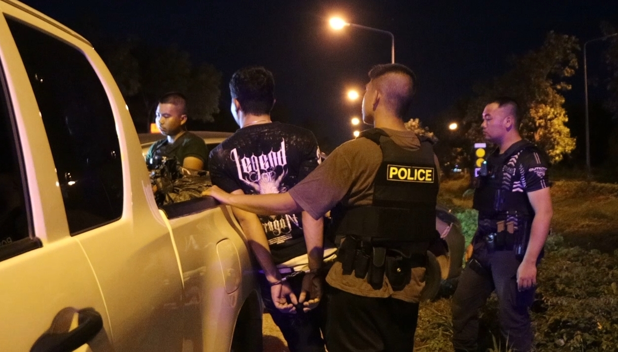 เมื่อตรวจในที่เกิดเหตุ พบว่าเป็นเหตุการณ์ ทางเจ้าหน้าที่ตำรวจ กก.3 บก.สกส.บช.ปส. นำโดยพันตำรวจโท อดิสรณ์ อักษร สว.กก.3 บก.สกส.บช.ปส. ได้นำกำลังไล่ล่าผู้ต้องหาขนยาเสพติดมาจากจังหวัดเชียงราย มาจนถึงเกิดเหตุจังหวัดพิษณุโลก คนร้ายเกิดขับรถยนต์เก๋ง ฝ่าไฟแดงบริเวณแยกหนองอ้อ ย้อนศร เจ้าหน้าที่ตำรวจจำเป็นต้องขับรถติดตามหวั่นเกิดอุบัติเหตุ เพราะคนร้ายขับรถด้วยความเร็ว จนทำให้รถเจ้าหน้าที่ตำรวจพุ่งชนคุณลุง ที่กำลังขับขี่รถจักรยานยนต์กำลังจะเลี้ยวเข้าบ้าน จนได้รับบาดเจ็บสาหัส เจ้าหน้าที่จึงตัดสินใจยิงยางหน้าด้านซ้ายของคนร้ายจนรถเสียหลักอยู่ตรงเกาะกลางถนน ก่อนคนร้าย 2 คนวิ่งลงจากรถ ถูกเจ้าหน้าที่ตำรวจจับกุมตัวได้ 1 คน (ทางเจ้าหน้าที่ตำรวจ ไม่ยอมเปิดเผยรายชื่อแต่อย่างใด ) ส่วนผู้ต้องหาอีก 1 คนสามารถวิ่งหลบหนีไปได้ ทราบชื่อผู้หลบหนีคือนายจตุรพักตร์ ทักจาง อายุ 27 ปี อยู่บ้านเลขที่ 31 หมู่ 5 ต.เขานิพันธ์ อ.เวียงสระ จ.สุราษฎร์ธานี